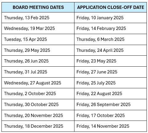 Meeting dates for decisions on grant applications for 2025 are as follows: